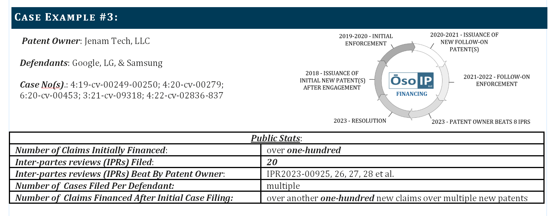 Oso IP has secured prosecution financing for a multitude of portfolios over the span of decades.