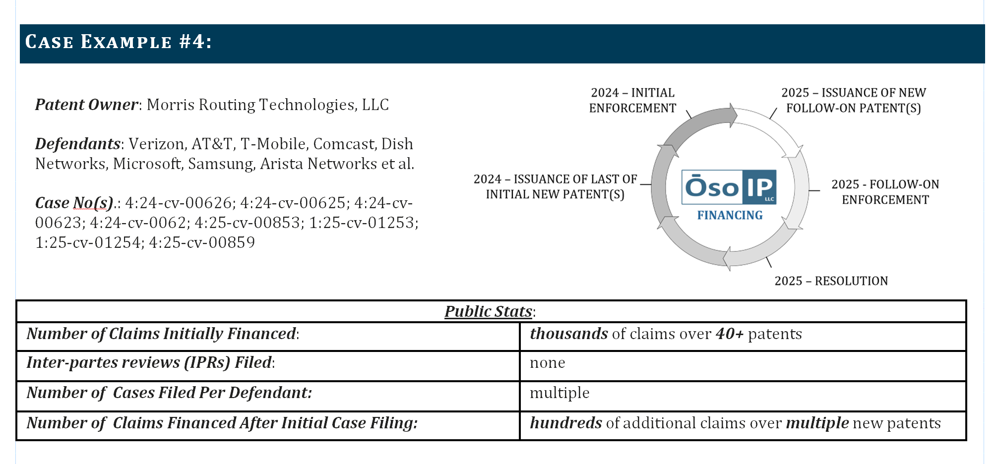 With dozens of deals closed over decades, Oso IP’s team has the experience and know-how to help patent owners succeed in maximizing value extraction from their patent portfolio.